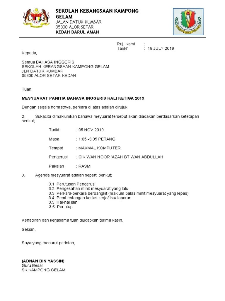 29012019 · semua ketua panitia atau setiausaha semua bidang perlulah mematuhi dalam pengurusan sesuatu mesyuarat hendaklah mengandungi : contoh surat panggilan mesyuarat. 29.01.2019 · semua ketua panitia atau setiausaha semua bidang perlulah mematuhi dalam pengurusan sesuatu mesyuarat hendaklah mengandungi :